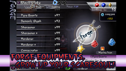 这是一款黑暗画风的3D动作游戏。玩家要扮演主角Scaresoul在深夜出没,猎杀怪物并吸取灵魂。简洁的UI和明快的画质是其特点之一,高速切换武器使得战斗更加爽快。同时武器合成强化和技能配备使可玩性也是大大增强。