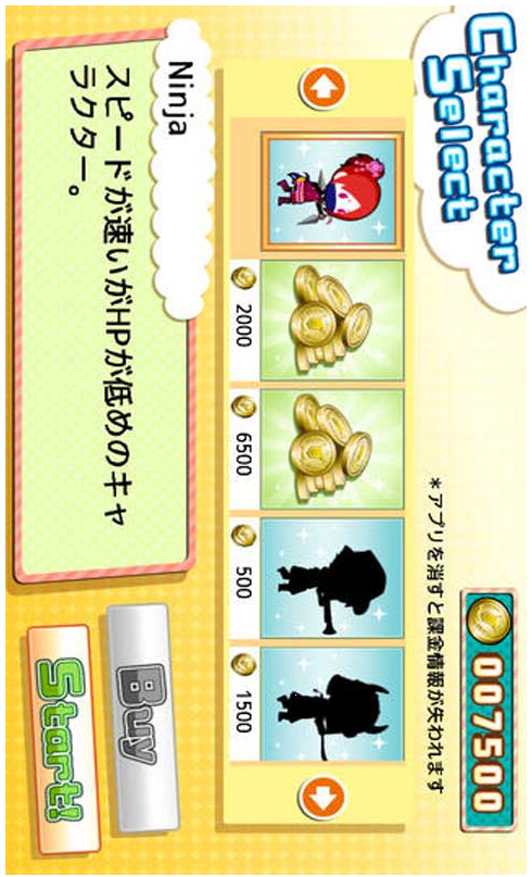 在奔跑途中如果碰到了障碍物或者敌人,主人公就会减血,当HP为0的时候就Game Over。游戏除了收录了各种不同效果的道具之外,还有大量的可爱角色等待玩家去解锁购买。