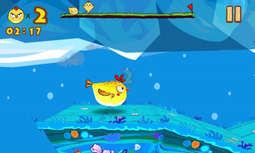小鸡快跑2012是一款具卡通风格且很有速度感的冒险游戏,在 iOS 平台中已非常的热门(发布三周的下载量达到 250万),而目前在 Google Play 的最新热门排行名次也持续在向前攀升中,使用 Android 手机的朋友千万不要错过了!游戏主角是一只可爱的小鸡,为了找寻鸡妈妈而不停的向前奔跑,在奔跑的途中会遇到重重的障碍,要越过高山跳过陷阱,就只能靠玩家来帮它过关了!一共有四种场景 Fantasy Island (梦幻岛)、Undersea (海底世界)、Ice Age (冰河时代)、Underworld (地下城)。小鸡在每个关卡都有三条命,若能完全不失败的过关,就能获得三颗星,用掉一条命就会少一颗星,在游戏过程中会随机出现「红色爱心」吃到的话则可多一条命,当然都用光光的话,就必须重头来过了。想开启第二场景「海底世界」需拥有 54 颗星,也就是第一场景中的 18 个关卡都必须拿到三颗星,其实还蛮不容易的,精神好的时候才有办法专注的玩!我在试玩的时候,小鸡不知道掉落多少次了~(叹)是我反应太慢了吗?>.在游戏中除了会出现「红色爱心」之外,也会出现一些小工具例如「火箭」,而这边的火箭与「山羊冲冲冲」中的有相同的功能,只是一个是往上冲,一个则是向前冲,在使用火箭时,不需要操纵小鸡也不会掉下去,但要小心因为它是有时效的,必须注意时效快结束时,要适时的轻触萤幕让小鸡跳跃,避免不小心掉落了。