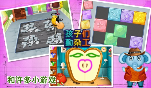 孩子们通过勤杂工只是GameCastor充分利用充满想象力和你的孩子的技能。锤子,扳手,钳子,更时刻为你的孩子来帮助你的家庭工作从修理椅子浴缸。有吨的活动,在那里您的孩子将一切帮助像作为固定的椅子,组装床和显示创造性的想象力混合油漆,并使用不同的工具,使企业自己。